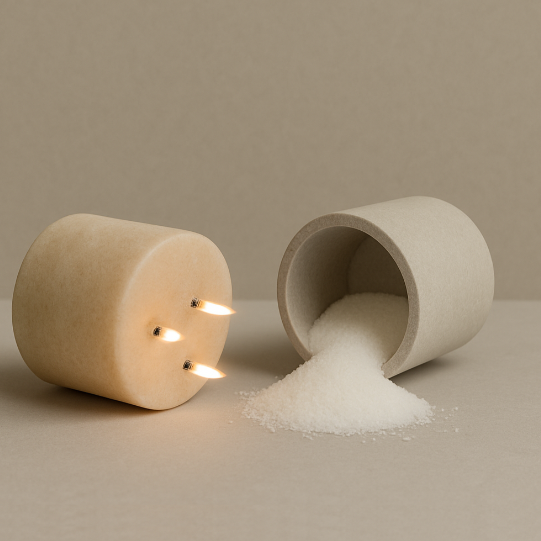 Lätt Candles te invita a transformar cualquier recipiente en una vela con nuestra sand wax 100% vegetal, que ofrece una quema limpia y duradera. Esta cera te permite convertir cualquier envase en una pieza única de luz. Diseñada para quienes buscan creatividad, estilo y conciencia en un solo producto.