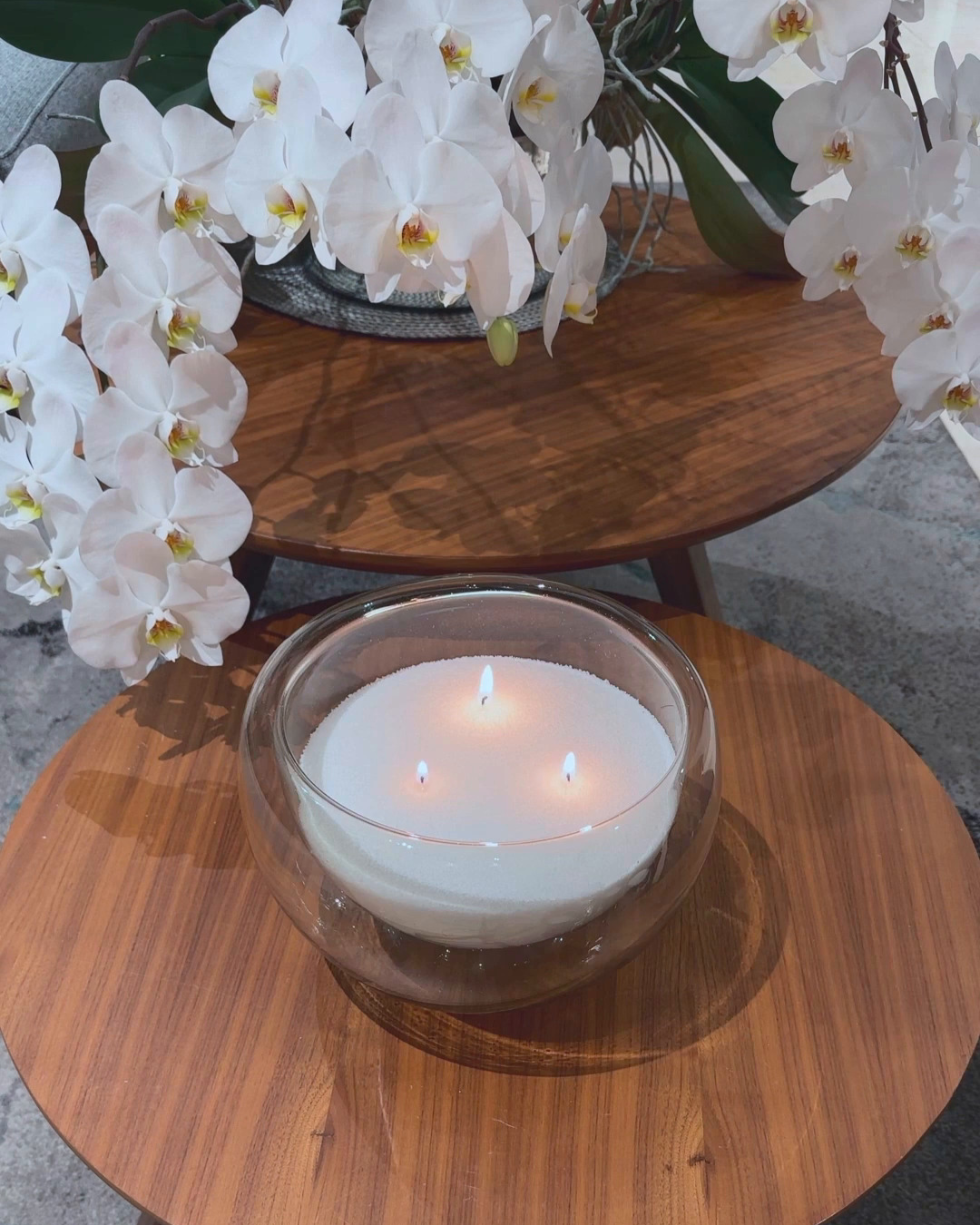 Con su forma redonda, translúcida y contenida, el Cuenco Tabit es una pieza visualmente ligera pero de gran presencia. La doble pared crea una ilusión flotante que amplifica la luz y eleva cualquier espacio. Ideal para quienes buscan una vela que ilumine con elegancia y suavidad.